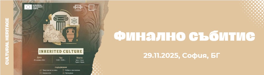 ФИНАЛНО СЪБИТИЕ: “INHERITED CULTURE” 29 НОЕМВРИ | СЪБОТА | 18:00 Ч. | ЛАРГО, СОФИЯ След три години усилена работа, стотици часове доброволчески труд на 135 ентусиазирани младежи от…